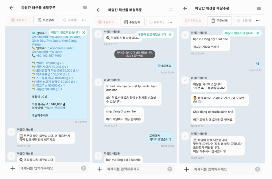 푸꾸옥(북부) 호텔에서 배달 시켜먹기 [마담칸]