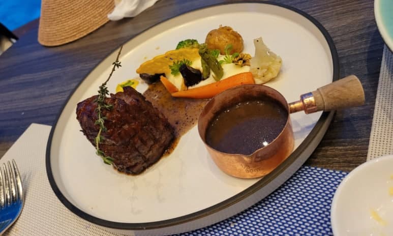 스테이크 코스 한개 더 주문했다