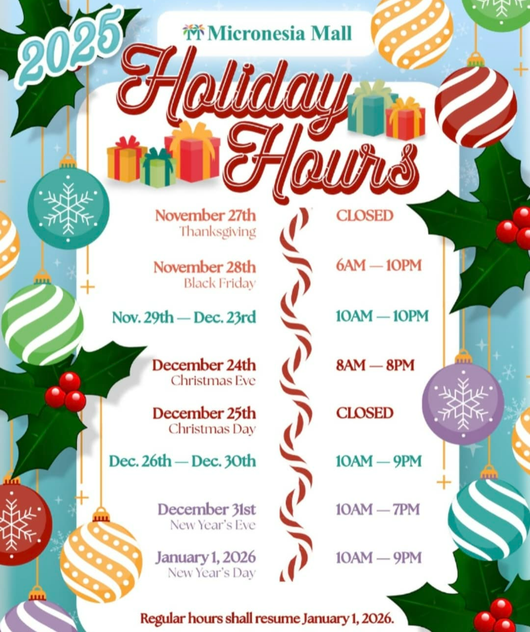 - GPO / K마트 / T갤러리아 / 마이크로네시아몰 모두 운영시간 다름