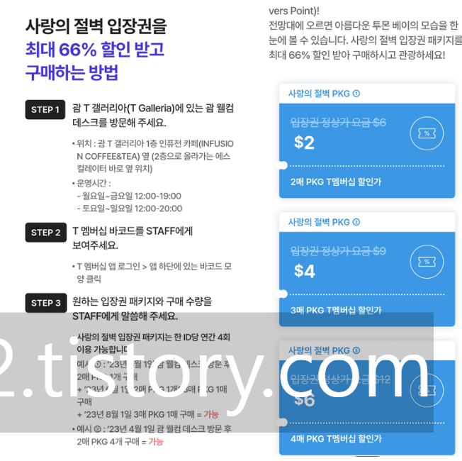 인퓨전 카페 옆 T 멤버십 부스에서만 할인받아 티켓 구입 가능